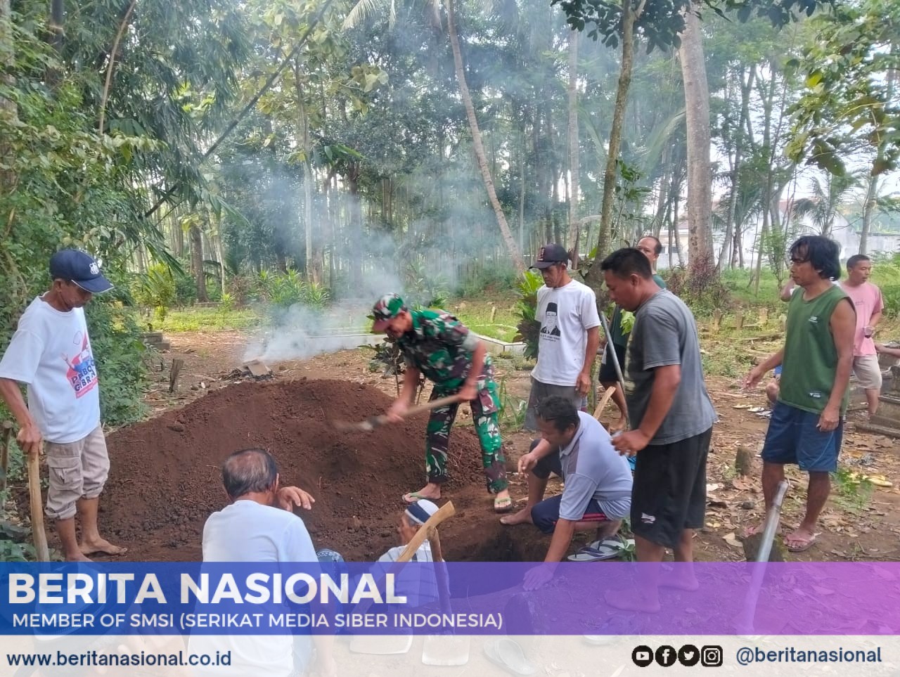 Tidak sekadar melayat, Sertu Slamet S bahkan turun langsung membantu proses penggalian makam. Kehadirannya yang menyatu bersama masyarakat membuat suasana duka terasa lebih hangat dan penuh empati. Warga sekitar pun merasa terharu melihat seorang anggota TNI yang tanpa ragu memegang cangkul dan bekerja bersama masyarakat.
