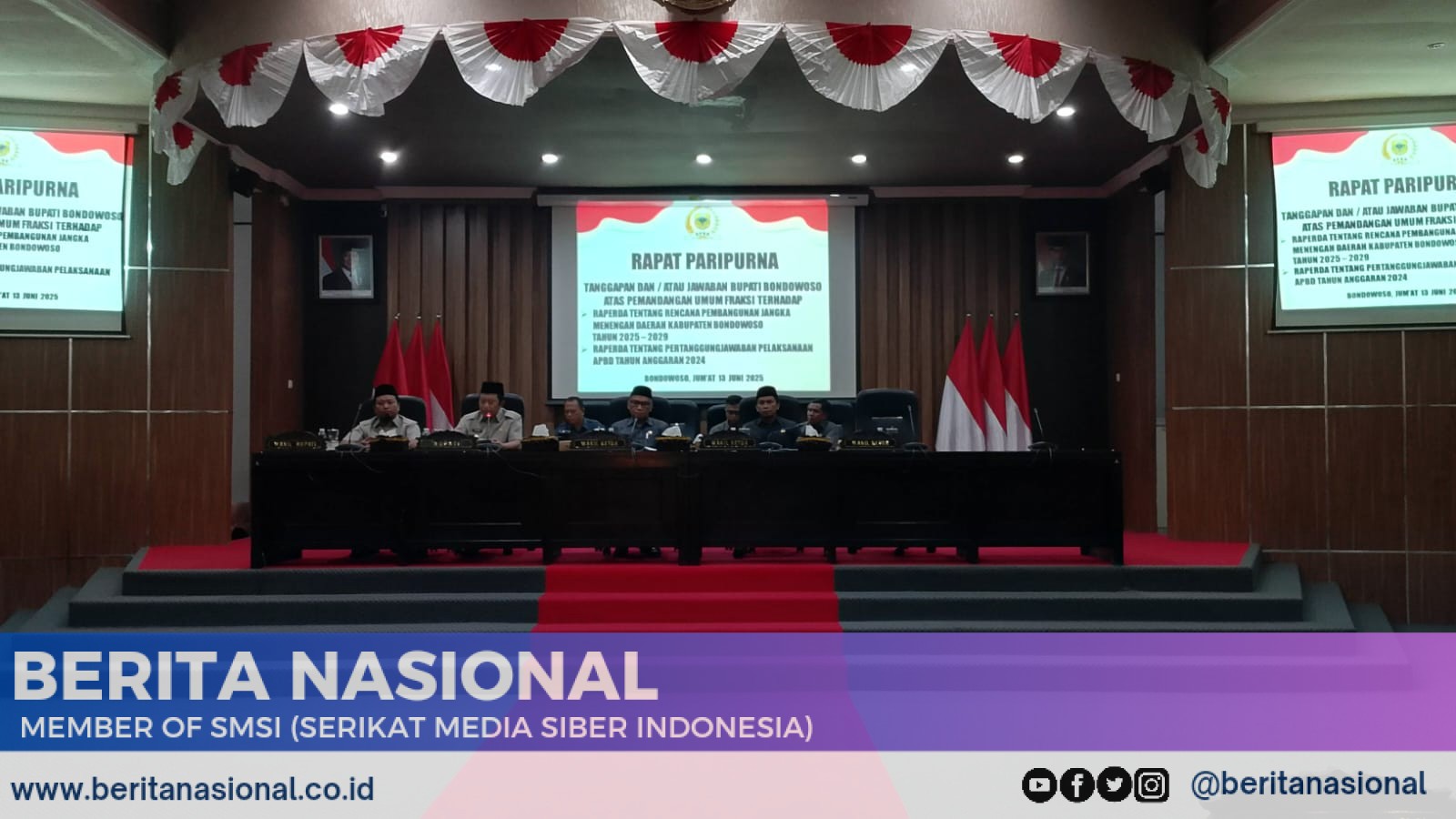 Bondowoso, BERITANASIONAL.CO.ID – Bupati Bondowoso menyampaikan tanggapan resmi atas Pemandangan Umum Fraksi-Fraksi DPRD Kabupaten Bondowoso terhadap Rancangan Peraturan Daerah (Raperda) tentang Rencana Pembangunan Jangka Menengah Daerah (RPJMD) Tahun 2025–2029 dan pelaksanaan Anggaran Pendapatan dan Belanja Daerah (APBD) Tahun 2024 dalam rapat paripurna DPRD, yang digelar di Gedung DPRD Bondowoso.