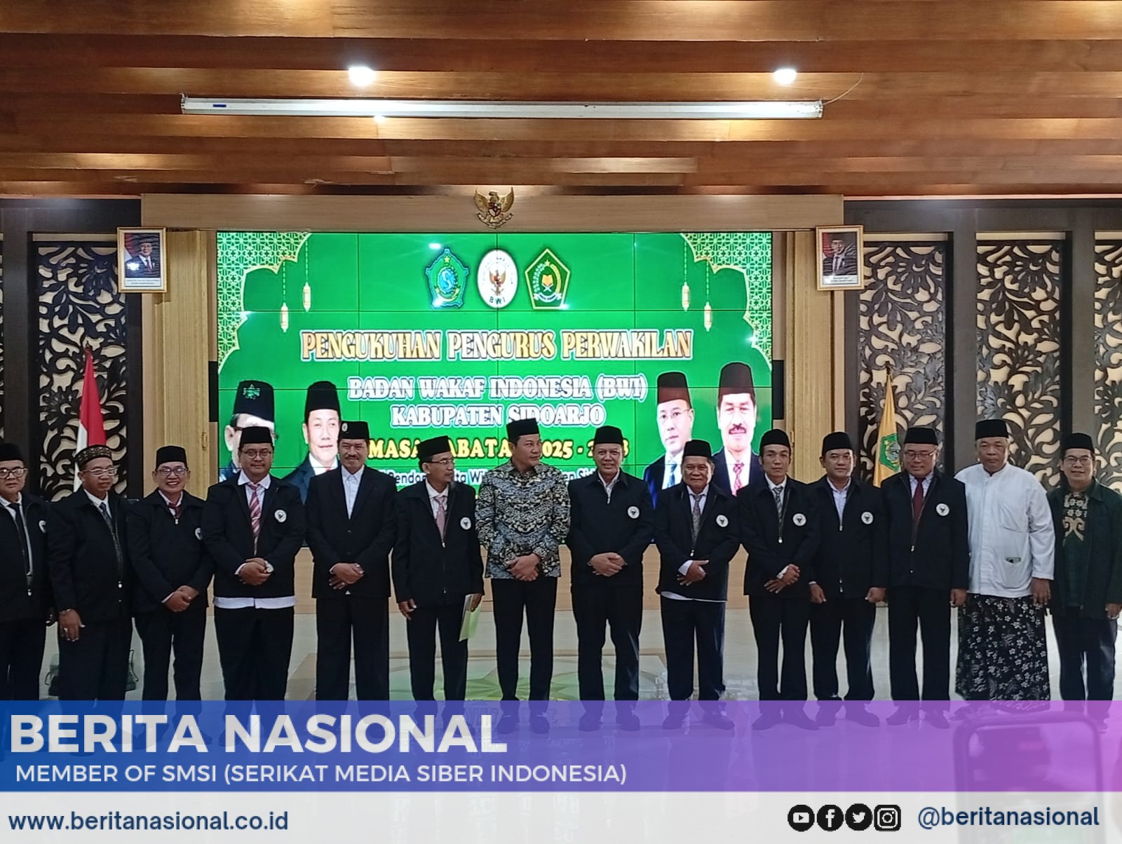SIDOARJO, BERITANASIONAL.CO.ID –  Pada saat Pengukuhan Pengurus Perwakilan Badan Wakaf Indonesia (BWI) Kabupaten Sidoarjo, masa jabatan 2025-2028, Bupati Sidoarjo H Subandi, SH, MKn, berjanji akan memberikan dukungan terhadap keberadaan BWI Sidoarjo, terutama program percepatan sertifikat wakaf.