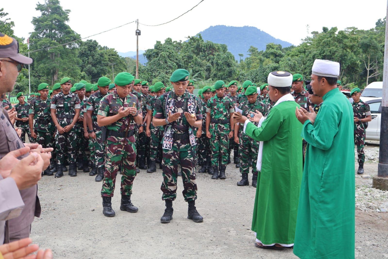 Kedatangan Danbrigif TP 28/Bari Fola bersama Ketua KCK Cabang Brigif TP 28/Bari Fola disambut secara adat dan militer di Marshaling Area/MA Yonif TP 867/Satria Manggasa. Prosesi penyambutan berlangsung khidmat melalui lorong prajurit, jajar kehormatan, serta penampilan tarian adat Soya-Soya sebagai bentuk penghormatan kepada pimpinan satuan.