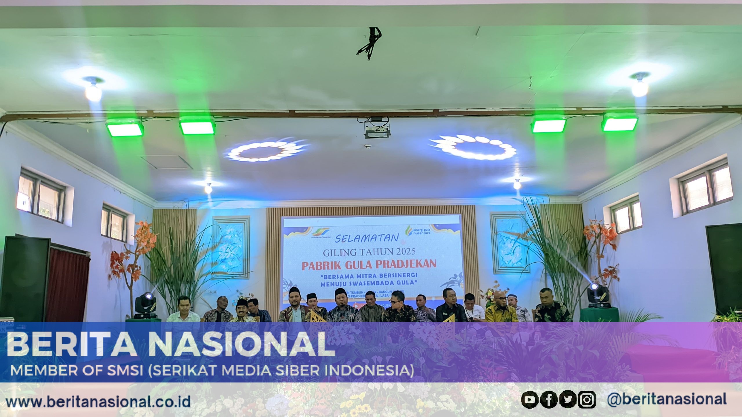 Bondowoso, BERITANASIONAL.CO.ID- Pabrik Gula (PG) Prajekan, Kecamatan Prajekan, Kabupaten Bondowoso, menggelar acara selamatan buka giling tebu tahun 2025 pada Sabtu, 10 Mei 2025, di Gedung Grenopuri. Dengan mengangkat tema “Bersama Mitra Bersinergi Menuju Swasembada Gula”, kegiatan ini menjadi simbol sinergi antara pabrik, petani, dan pemerintah dalam mendukung ketahanan pangan nasional melalui produksi gula dalam negeri.