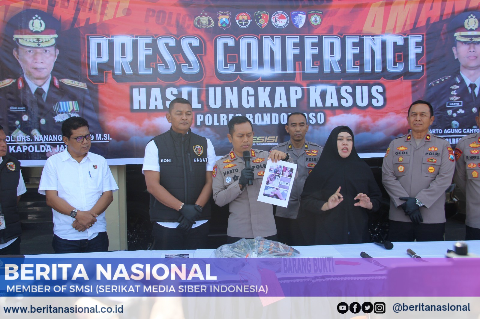 Bondowoso, BERITANASIONAL.CO.ID – Bertempat di Mapolres Bondowoso, Kepala Kepolisian Resor Bondowoso menggelar press release terkait pengungkapan kasus pencurian dengan kekerasan yang terjadi di sebuah ladang tembakau di Dusun Mengen Barat, Desa Mengen, Kecamatan Tamanan. Konferensi pers ini dihadiri oleh sejumlah awak media dari berbagai platform.(23/04/25)