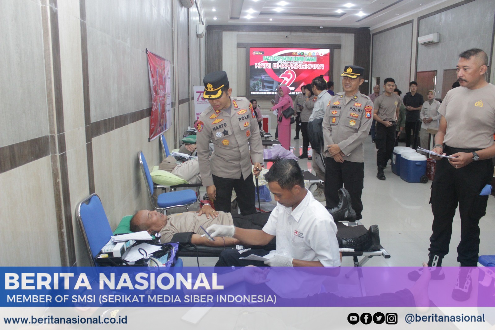Bondowoso, BERITANASIONAL.CO.ID-Dalam semangat kebersamaan dan kepedulian yang mendalam, Kepolisian Resor (Polres) Bondowoso hari ini sukses menyelenggarakan kegiatan bakti kesehatan berupa donor darah massal. Acara ini merupakan bagian tak terpisahkan dari rangkaian peringatan Hari Bhayangkara ke-79 tahun 2025, yang jatuh pada tanggal 1 Juli mendatang. Digelar di Aula Polres Bondowoso sejak pukul 08.00 WIB, kegiatan ini menjadi simbol nyata komitmen Polri dalam aksi kemanusiaan dan pengabdian kepada masyarakat.