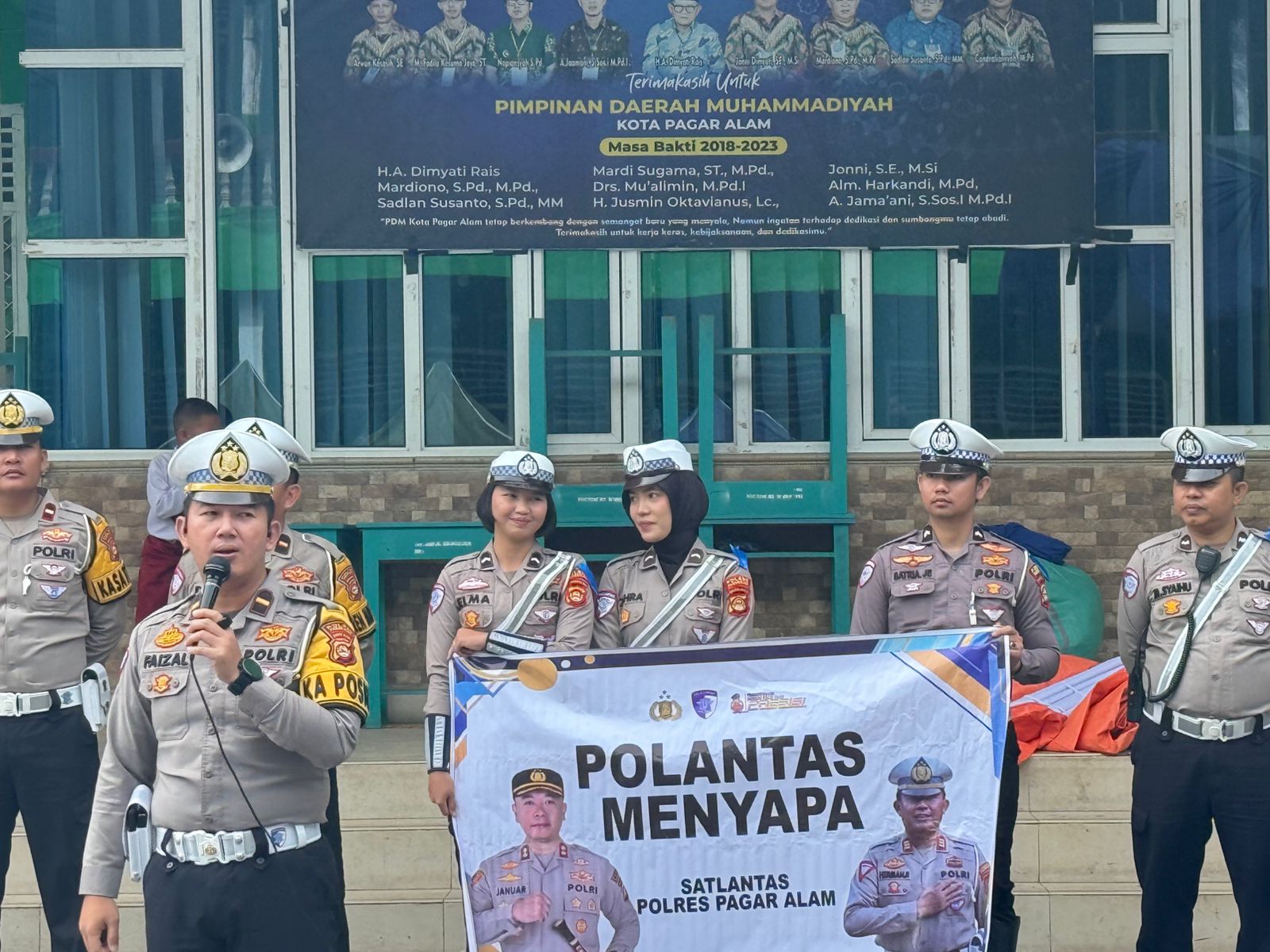 Pagaralam,BERITANASIONAL.CO.ID – Dalam rangka menyukseskan Operasi Zebra Musi 2025, Sat Lantas Polres Pagaralam melaksanakan kegiatan sosialisasi tertib berlalu lintas di SMA/SMK Muhammadiyah Kota Pagaralam, Rabu (19/11/2025) pukul 08.00 WIB. Kegiatan ini dipimpin langsung oleh Kasat Lantas AKP Herman, S.H., dan diikuti oleh Regident Ipda Faisal Ramadhanus, S.H., Polwan Brigpol Farisha Adela, serta anggota Sat Lantas lainnya.