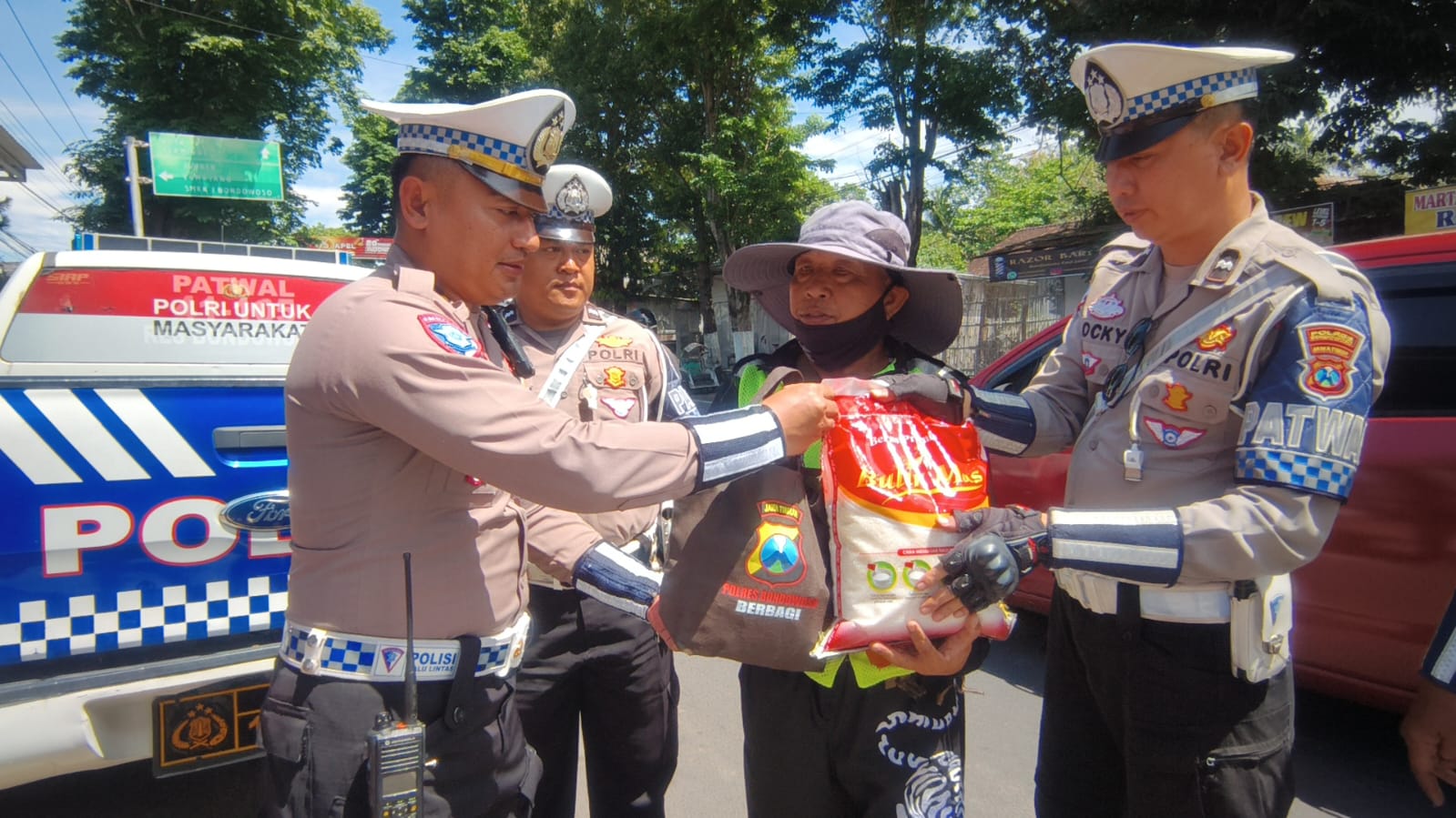 Dalam kesempatan tersebut, Kasat Lantas menyampaikan bahwa kegiatan ini bukan sekadar penyaluran bantuan, melainkan bentuk kepedulian dan empati Polri terhadap masyarakat kecil yang setiap hari bekerja keras di jalanan demi memenuhi kebutuhan keluarga.