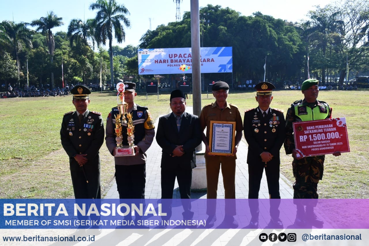 Bondowoso, BERITANASIONAL.CO.ID – Suasana penuh khidmat dan semangat kebersamaan tampak di Lapangan Alun-Alun RBA Ki Ronggo, Bondowoso, saat dilangsungkannya Upacara Peringatan Hari Bhayangkara ke-79, Selasa (1/7/2025). Upacara ini turut dihadiri oleh jajaran Forum Koordinasi Pimpinan Daerah (Forkopimda) Bondowoso, sebagai wujud nyata dukungan dan sinergitas antar-lembaga dalam menjaga stabilitas keamanan di daerah.