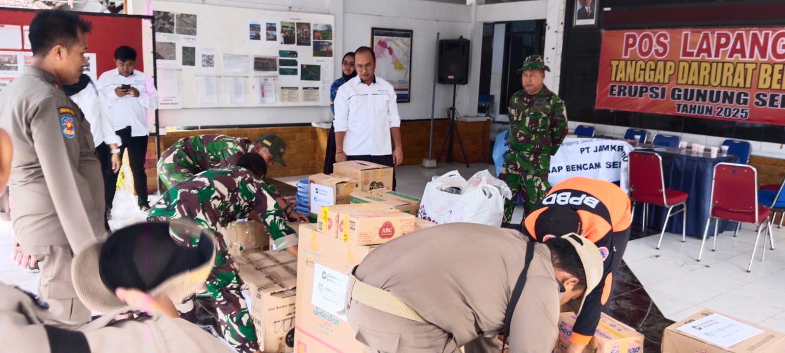 Lumajang, BERITANASIONAL.CO.ID— Upaya pemulihan pasca erupsi Gunung Semeru kembali diperkuat melalui sinergi lintas instansi. Personel Kodim 0821/Lumajang bersama Satpol PP dan relawan menurunkan logistik bantuan di Posko Terpadu Desa Supiturang, Kecamatan Pronojiwo, pada Rabu (3/12/2025). Kegiatan itu dilakukan untuk memastikan seluruh bantuan yang masuk dapat terdistribusi secara tepat sasaran serta tercatat dengan baik untuk kebutuhan warga terdampak.